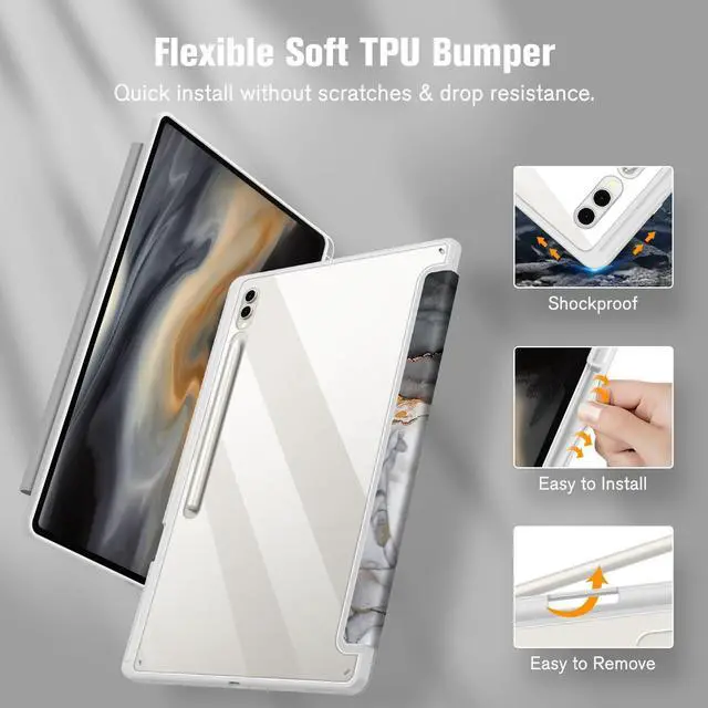 Adjustable Stand Angles: Tri-fold front cover has flip capability to transform the Samsung Tab S10 Ultra case into a viewing stand and keyboard stand ^^