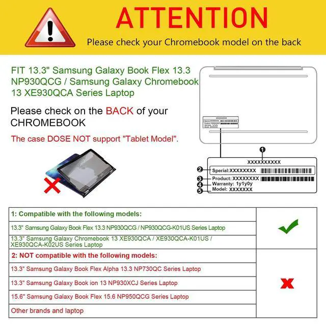 Compatible with: x 13.3" Samsung Galaxy Book Flex Alpha 13.3 NP730QC Series laptopx 13.3" Samsung Galaxy Book ion 13 NP930XCJ Series laptopx 15.6" Samsung Galaxy Book Flex 15.6 NP950QCG Series laptopx Other brands and laptopThis Fintie 13.3" Samsung Galaxy Book3 360 Case is a must have and perfect companion for an easy and enjoying life. This case sports a simple and classy design made from synthetic leather, and the interior is lined with soft microfiber so you don't need to worry about any damages. Case design lets you Open/Close your laptop all the way and access to all ports.