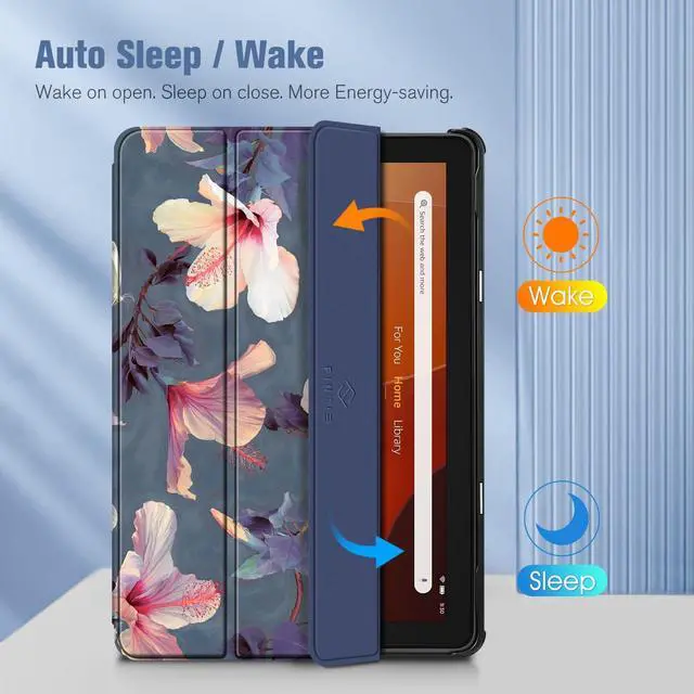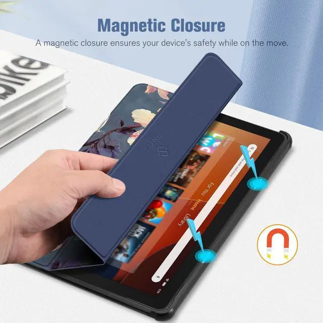 CompatibilitySpecifically designed for 10.1" All-New Fire HD 10 & Fire HD 10 Plus 2023 Tablet (13th Generation, 2023 Release) ONLY. Will NOT fit any other Kindle or Fire devices. ^^ Adjustable AnglesThe special tri-fold front cover has flip capability to transform the case into a viewing stand and typing stand. Easy clip-on application. ^^ Slim & LightweightSlim and lightweight one-piece design adds minimal bulk while protecting your precious 2023 Fire HD 10 tablet. Precise cut-outs with full access to all controls and features without taking off the case. ^^ Auto Wake / SleepBuilt-in magnetic strip provides sleep / wake feature, automatically wakes or puts your 10.1 inch Fire HD 10 2023 tablet to sleep.