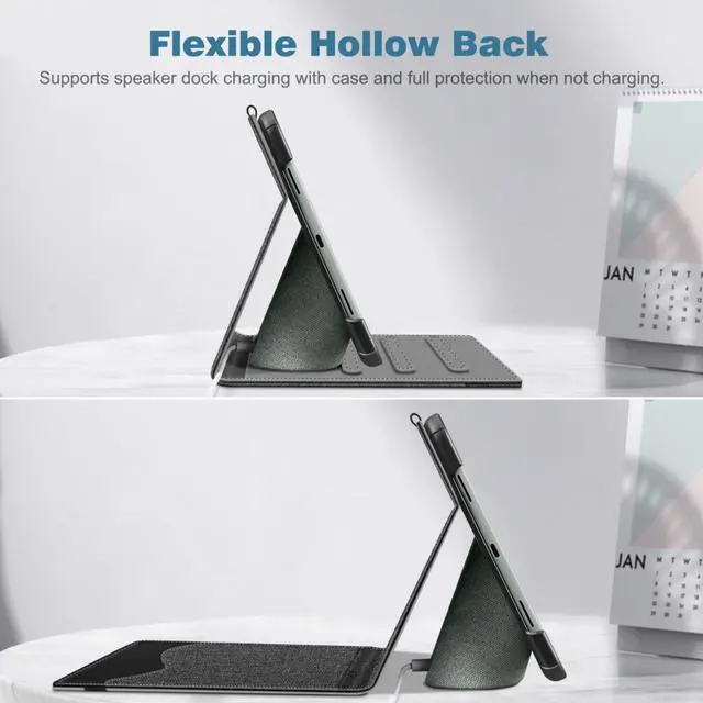 Perfect CompatibilitySpecifically designed for 11 Inch Google Pixel Tablet with Charging Speaker Dock 2023 release. Not Compatible with Google Pixel Slate 12.3" Touchscreen Tablet or other devices. ^^ Multiple Viewing AnglesThe case can turn into a convenient stand. Frees your hands and gives you a best viewing angle. ^^ Premium MaterialThe premium synthetic leather exterior with soft microfiber lining protect your 11 Inches Google Pixel Tablet from shocks, bumps and scuffs. ^^ Precise Cutouts Easy access to all the controls and features; Perfect cutouts for speakers, camera and other ports. Flexible hollow design on the back of Google Pixel Tablet case supports Google Pixel Tablet wireless charging with charging dock without taking off the case (shown as picture).