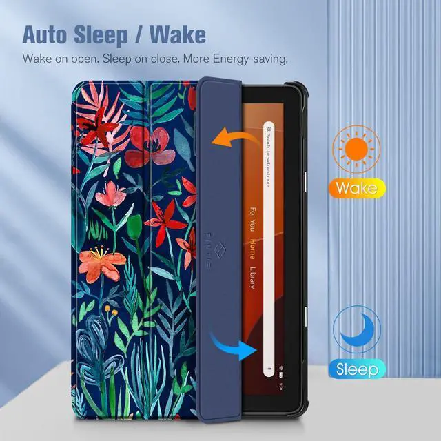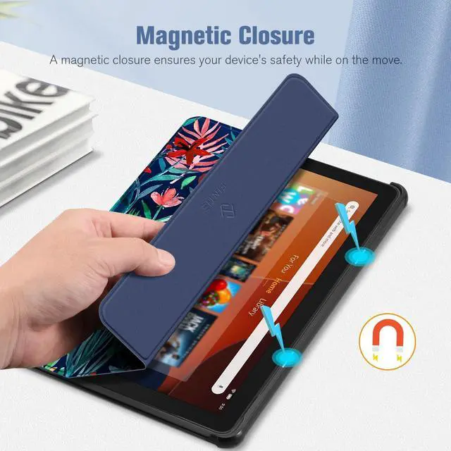 CompatibilitySpecifically designed for 10.1" All-New Fire HD 10 & Fire HD 10 Plus 2023 Tablet (13th Generation, 2023 Release) ONLY. Will NOT fit any other Kindle or Fire devices. ^^ Adjustable AnglesThe special tri-fold front cover has flip capability to transform the case into a viewing stand and typing stand. Easy clip-on application. ^^ Slim & LightweightSlim and lightweight one-piece design adds minimal bulk while protecting your precious 2023 Fire HD 10 tablet. Precise cut-outs with full access to all controls and features without taking off the case. ^^ Auto Wake / SleepBuilt-in magnetic strip provides sleep / wake feature, automatically wakes or puts your 10.1 inch Fire HD 10 2023 tablet to sleep.
