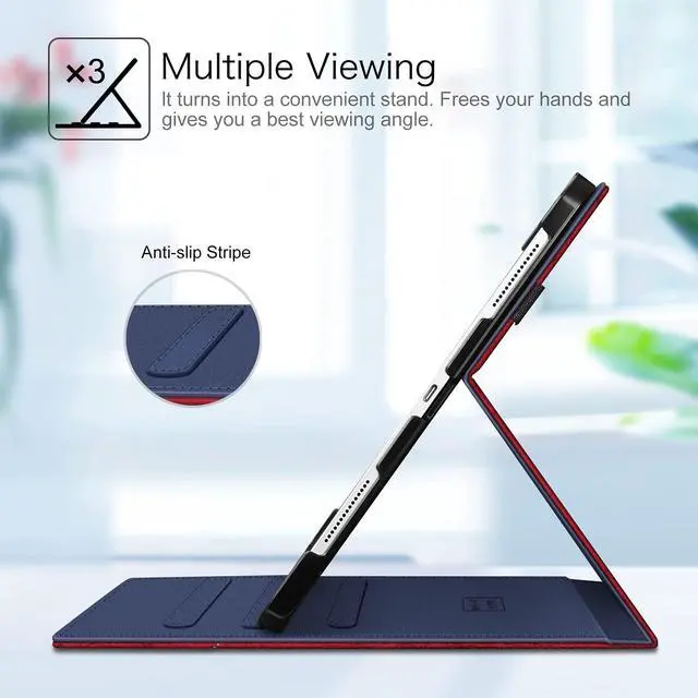 ^^ Easy clip-on application. Built-in magnetic strip automatically wakes or puts your device to sleep when the lid is opened and closed. ^^ Built from premium composition leather exterior and soft microfiber interior - snug fit, durable and protective. ^^ This case allows you to adjust the iPad to multiple angles securely. Document Card Pocket is designed for you to store your business cards, bank cards, notes or bills.