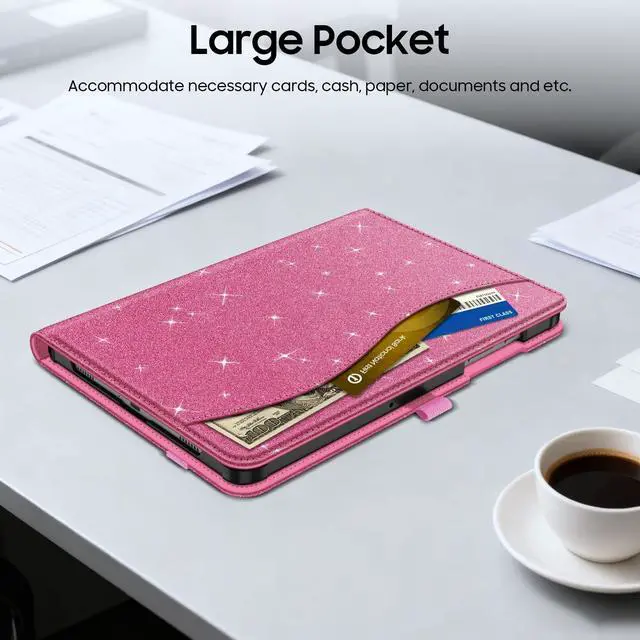 Fintie Case for Samsung Galaxy Tab A11+ Plus 11 Inch 2025/ A9+ Plus 2023, Multi-Angle Viewing Smart Stand Back Cover with Pocket Auto Wake/Sleep, Glittering Pink