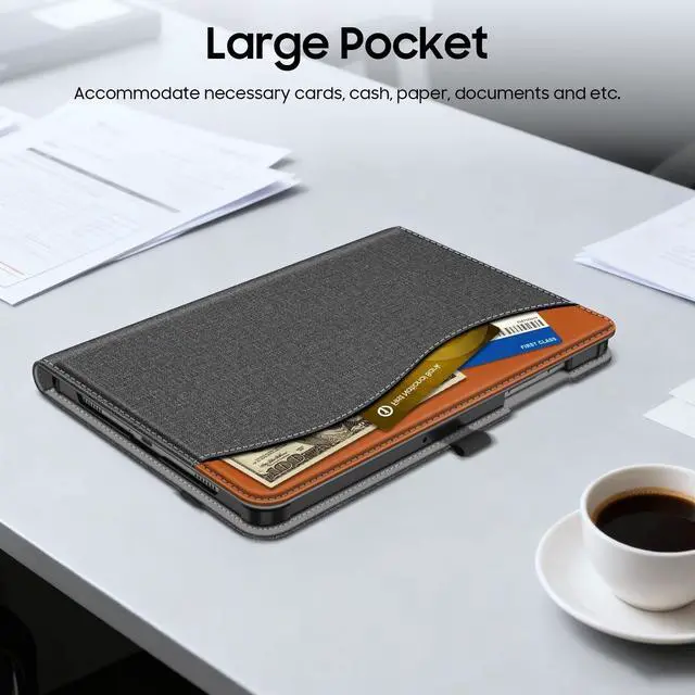Release TabletProduct description: Protect your Samsung Tab A9 + 11" 2023 with this Fintie Multi Angel protective case. The case features a simple and classic design of durable PU leather exterior and soft microfiber lining that protects your tablet from fingerprints, dirt, and scratches.