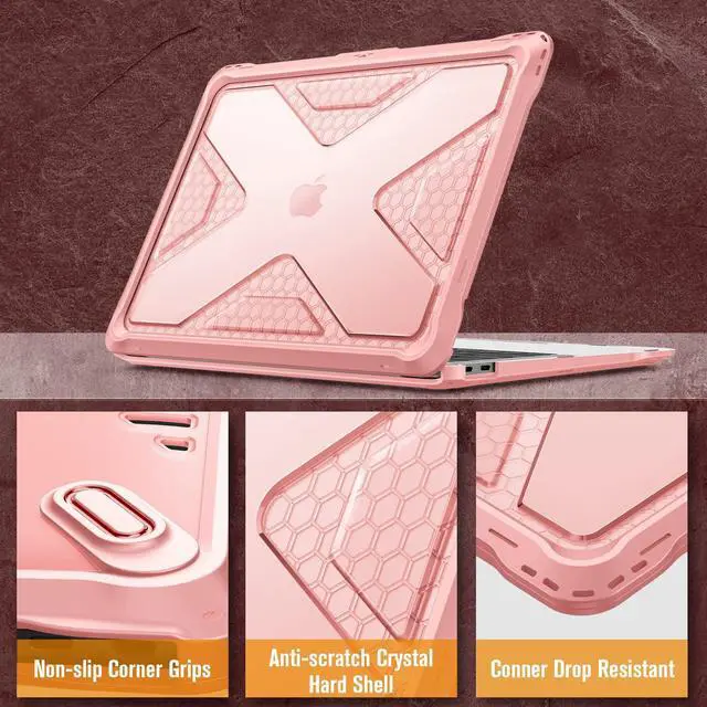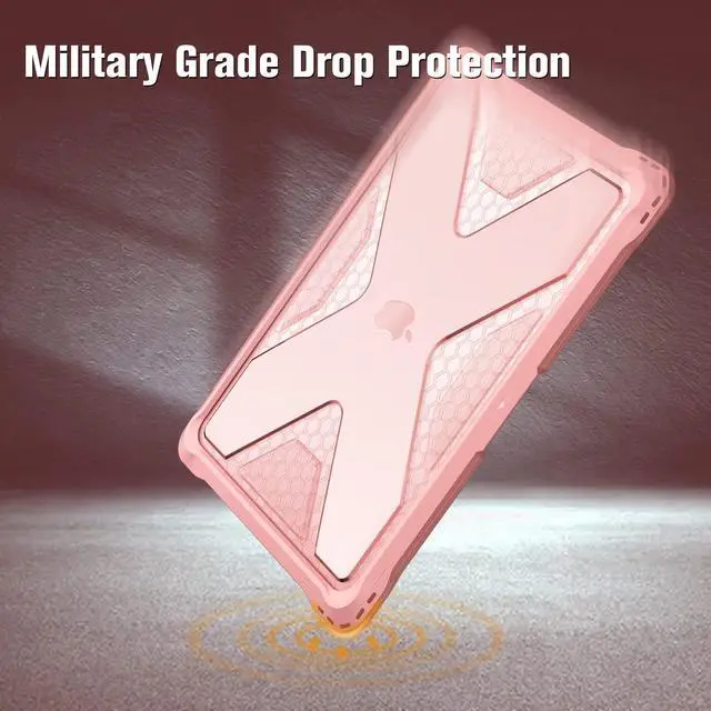 Fintie Case for MacBook Air 13 Inch A2337 (M1) / A2179 / A1932 (2018-2021 2022 Release) - Heavy Duty Hard Shell Cover with TPU Bumper for MacBook Air 13 Retina Display with Touch ID, Rose Gold