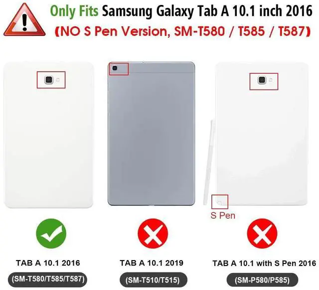 Fintie, a quality product within your reach. PLEASE NOTE: It will NOT work for 2019 Release Samsung Galaxy Tab A 10.1 (SM-T510/T515) Tablet / 2016 Release Samsung Galaxy Tab A 10.1 with S Pen (SM-P580/ P585) Tablet or any other device.