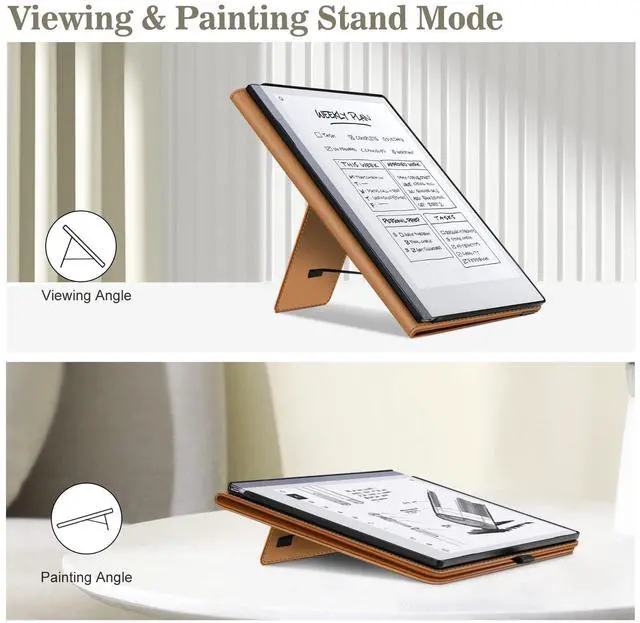 CompatibilityDesigned exclusively for Remarkable 2 10.3" Paper Tablet 2020 Released. Not Fit Remarkable 1 Tablet. ^^ Foldable AnglesSpecially designed with 2 stands for landscape angle and portrait viewing angle. The foldable stand design could set your hands free during your viewing. ^^ Build-in Card SlotDocument Card Pocket is designed for you to store your business cards, bank cards, cashes, notes or bills while on the go. ^^ Built-In Pen HolderSpecifically designed with a pen holder to protect and store your reMarkable marker. Keep it always ready for you. (reMarkable marker is NOT included).