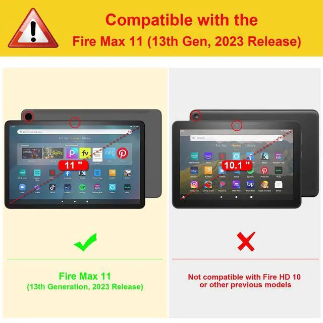 CompatibilityDesigned exclusively for 11 Inches All-New Kindle Fire Max 11 (13th Generation, 2023 Release). Will Not fit for any other Kindle or Fire tablets. ^^ Supports Fingerprint SensorPrecise cutouts supports fingerprint unlocking and allows stylus pen attaches magnetically to the side of Fire Max 11 tablet with case. Easily access to all features and controls. ^^ 360 Degree Rotating360 degree rotating structure in the case for flexible landscape and portrait viewing. Two anti-slip grooves support 3 flexible viewing positions (2 landscape, 1 portrait). ^^ Built-in Pencil Holder & Elastic BandSnap-n-roll design-easily snaps into mount.