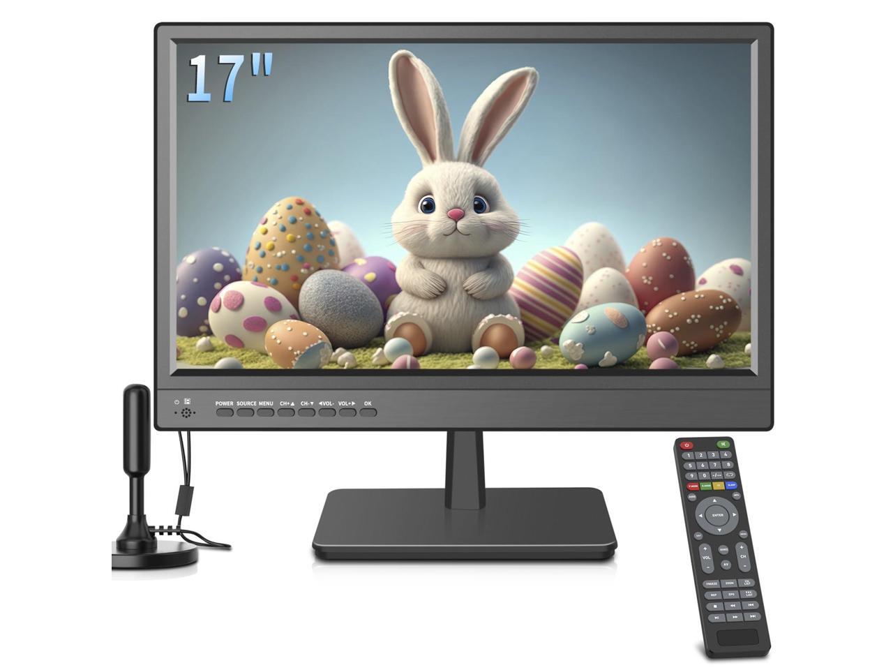 Jexiop 17inch TV,Small Flat Screen TV with ATSC Digital Tuner-HDMI &USB Port in-Dual Power-12 Volt Charger Cable and AC Power Suitable-for Caravan,Kitchen,Bedroom