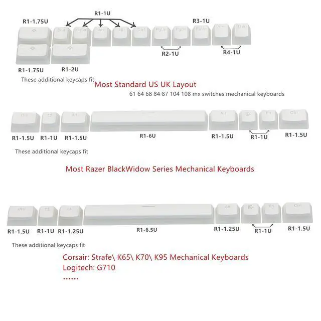 Note: There are additional keycaps compatible with razer blackWidow series, also compatible with corsair strafe/k65/k70/k95 and logitech G710.