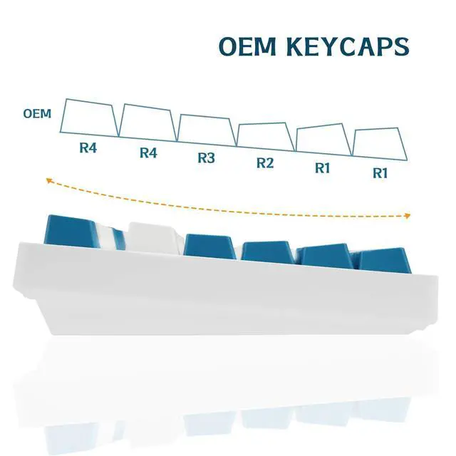 This keycap set contain 109pcs pbt backlit keycaps and 1pcs key puller ^^ It can fit most Standard US layout 61/ 87 TKL / 104 / 108 mx switches mechanical keyboards ^^ Excellent double shot craftsmanship, shine through the keycaps no light leakage ^^ The height is OEM profile, the thickness is about 1.4 mm ^^