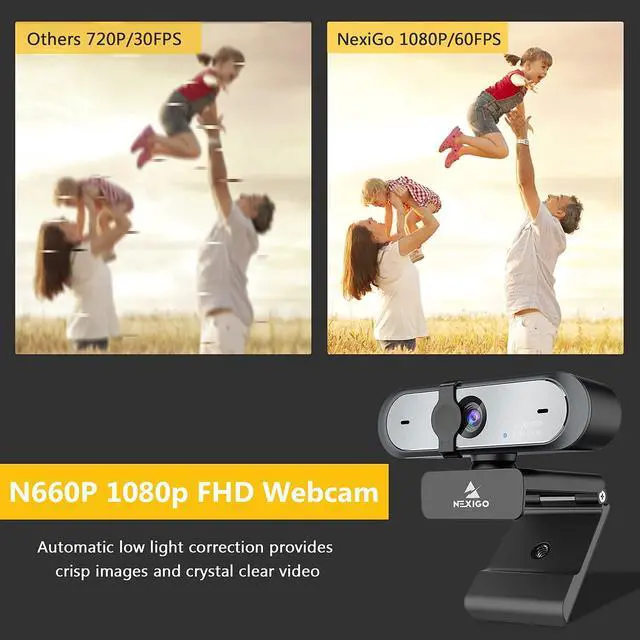 FHD 1080p 60fps WebcamThe NexiGo N660P Webcam provides a high definition 1920 X 1080p resolution picture and comes with automatic white balance and exposure control. The webcam provides clear images and high-definition video at 60fps even in dim or poorly backlit settings as the camera will intelligently adjust to produce the best possible image.