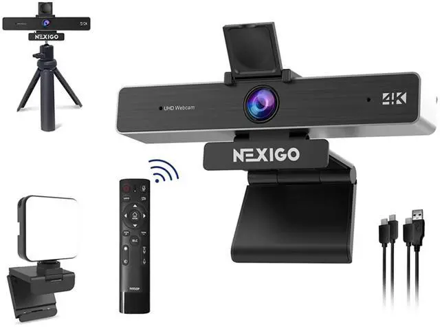 NexiGo 4K Webcam Kits, Zoom Certified, N950P Web Camera with Remote, Sony Starvis Sensor, 5X Digital, Extendable Tripod Stand, Video Conference Lighting, for Zoom Skype Teams Twitch