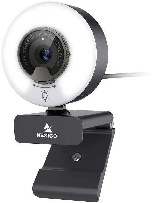 【 Three-Level Adjustable Ring Fill Light】 The built-in ring light provides 3-light Modes (with simple touch) and stepless adjustable brightness (with touch and press). You can achieve your ideal brightness level by touching and holding the ring light in dim light environments. Brighter than many other webcams with built-in lights, the light has a soft tone so that it doesn't create a glare. ^^ 【 60FPS 1080p Webcam with Auto Focus】 The NexiGo FHD Webcam comes with high definition 1920 x 1080p resolution at up to 60 frames per second (fps) refresh rate, and our enhanced autofocus helps to capture videos that are as accurate and true-to-life as possible.