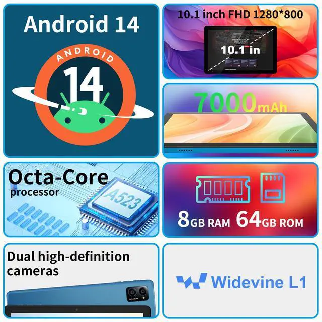 Optimized Everyday Performance with Android 14: Experience efficient multitasking with Android 14 Go, designed for fast and reliable performance across essential tasks. Powered by an octa-core processor, 8GB(3+5) RAM, and 64GB expandable storage (up to 1TB), this tablet delivers seamless browsing, smooth video streaming, email management, and productivity apps--ensuring an effortless experience throughout your day