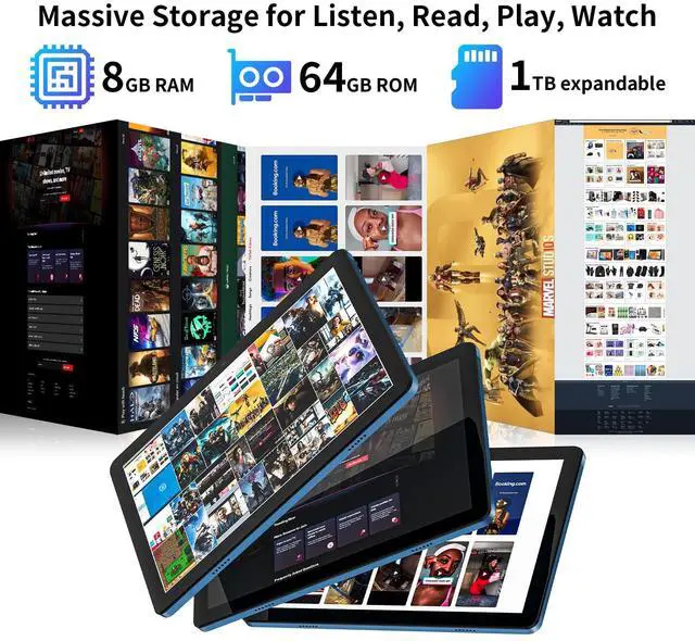 Vivid 10.1" IPS HD Display for Crisp Visuals: Immerse yourself in stunning visuals with the 10.1-inch IPS HD display, offering vibrant colors and exceptional clarity. Whether you're enjoying HD movies, attending video calls, or reading documents, the display's 1280x800 resolution ensures a crisp, sharp experience, ideal for both work and entertainment on the go