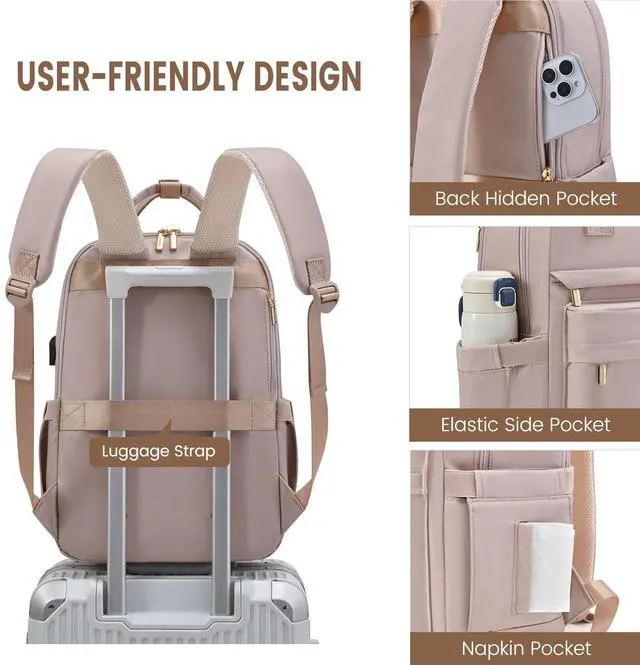 ON-THE-GO CONVENIENCE - With a luggage strap on the back, it allows the backpack to securely fit on the handle of a rolling suitcase - ease the burden in your journey. Back hidden pocket sits up against the wearer's body. It's difficult to steal your valuables without you feeling it. Let's travel.