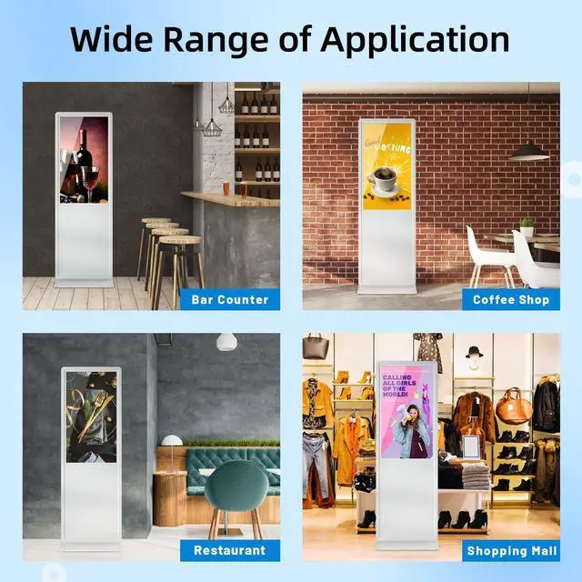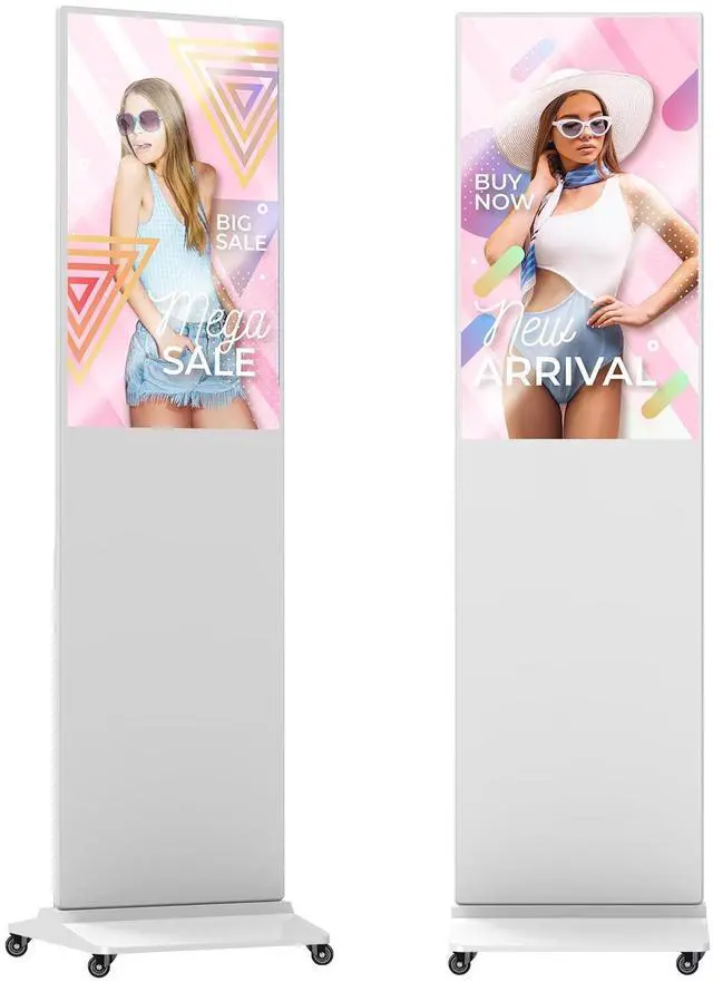 QIXZOCV 32 Inch Digital Signage Advertising Display Kiosk LCD Screen Indoor Floor Standing Commercial Totem Android System Vertical Poster with Auto Media Player-White