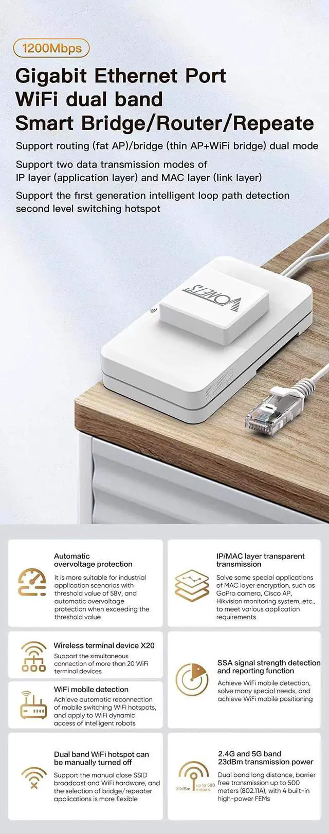 VONETS VAR1200-L is an Industrial Gigabit Dual band 2.4GH z/5GHz PoE WiFi Router Wireless Bridge Ethernet Repeater, WiFi Bridge with ethernet port, Point to Point Wireless Bridge WiFi to Ethernet Adapter