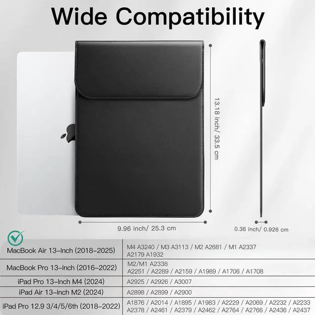 • [Compatibility] Compatible with MacBook Air 13.6 inch (M4/M3/M2) 2022-2025, compatible with MacBook Air 13 inch (M1) 2018-2020, compatible with MacBook Pro 13 inch (M2/M1) 2016-2022. iPad Pro 13-inch M4 2024, iPad Air 13-inch M2 2024, iPad Pro 12.9-inch 2022/2021/2020/2018