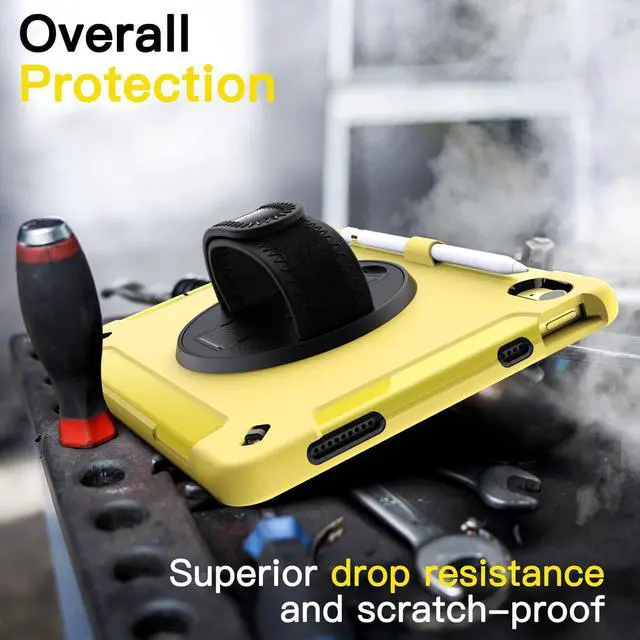 [360° Rotating Kickstand & Hand Strap] Easily support your iPad in multiple angles. Moreover, the soft hand strap allows you to hold your iPad firmly and comfortably to prevent accidental drops. And your kids can use iPad easily and safely to study or watch movies