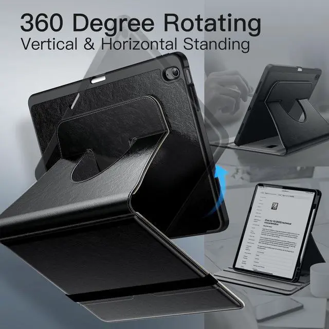 [360 Degree Rotating] The case coming with a 360 degree swivel design, stably supports your iPad whether in a portrait or landscape stand mode in various angles with two anti-slip deep grooves. Functional and convenient