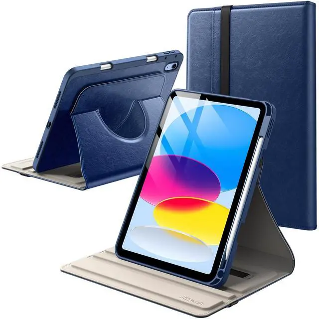 JETech Rotating Case for iPad (A16) 11th/10th Generation (2025/2022) with Pencil Holder, 360 Degree Rotation PU Leather Folio Protective Cover (Navy)