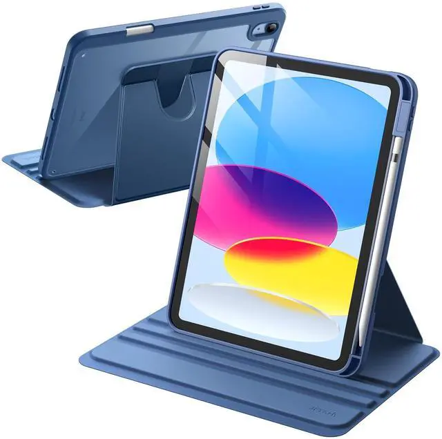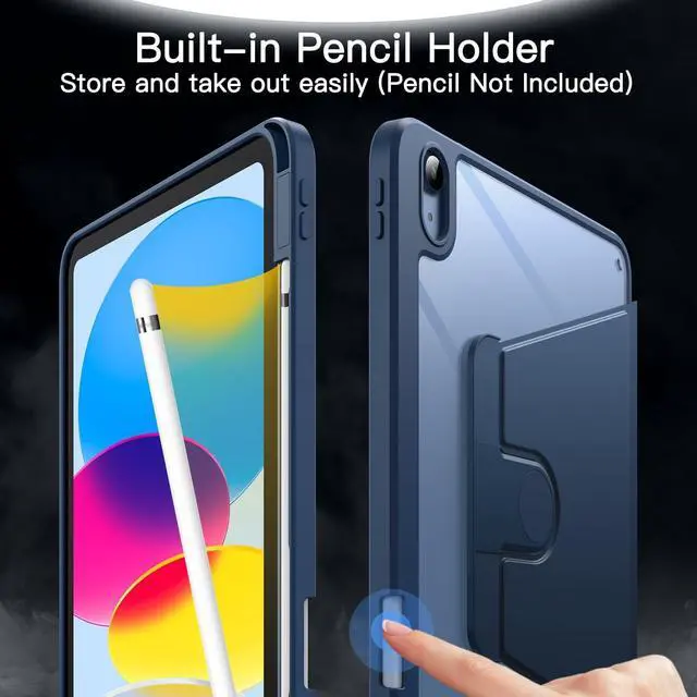 JETech Rotating Case for iPad (A16) 11th/10th Generation (2025/2022) with Pencil Holder, 360 Degree Rotation Protective Stand Cover Clear Back, Auto Wake/Sleep (Navy)