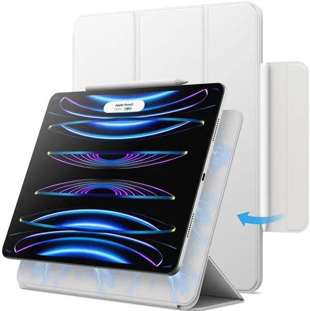JETech Magnetic Case for iPad Pro 12.9 Inch 2022/2021/2020/2018 (6th/5th/4th/3rd Generation), Pencil Charging 2nd Generation, Auto Wake / Sleep Case Cover