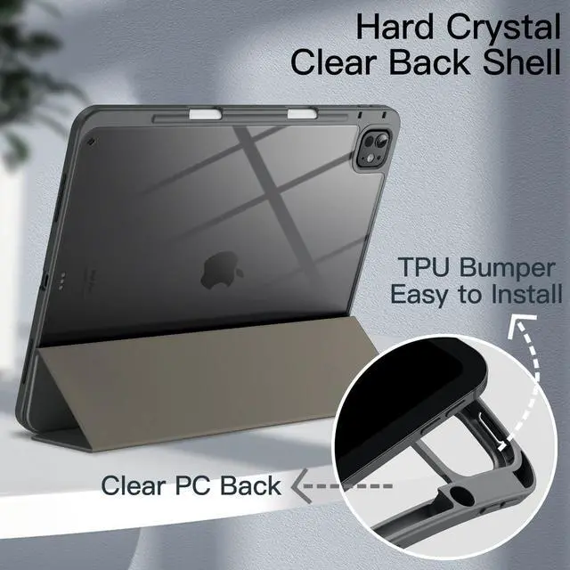 Fit iPad Model Numbers: A3360 / A3361 / A3362 / A2925 / A2926 / A3007. Please check the back bottom of your iPad to find the model number ^^ [Clear Crystal Back] Built with flexible TPU bumper and transparent hard PC back shell for showing the original beauty of your device. Highly protect your iPad against scratches and bumps, while making it easy to install or take it off ^^ [Built-in Pencil Holder] Easily store and remove your Pencil. Support magnetic Pencil charging in the Pencil holder when you are not using it. No need to worry it will fall off (Pencil NOT Included) ^^ [Precise Cutouts] Magnetic smart cover supports automatic sleep/wake function. Perfectly aligned cutouts for easy access to speakers, buttons and other ports ^^ [Viewing & Typing Mode] The tri-fold front cover can prop up your device in different angles to satisfy your optimal viewing and typing needs