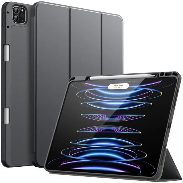 JETech Case for iPad Pro 12.9-Inch (6th/5th Generation, 2022/2021 Model) with Pencil Holder, Support 2nd Pencil Charging, Slim Tablet Cover with Soft TPU Back, Auto Wake/Sleep (Space Gray)