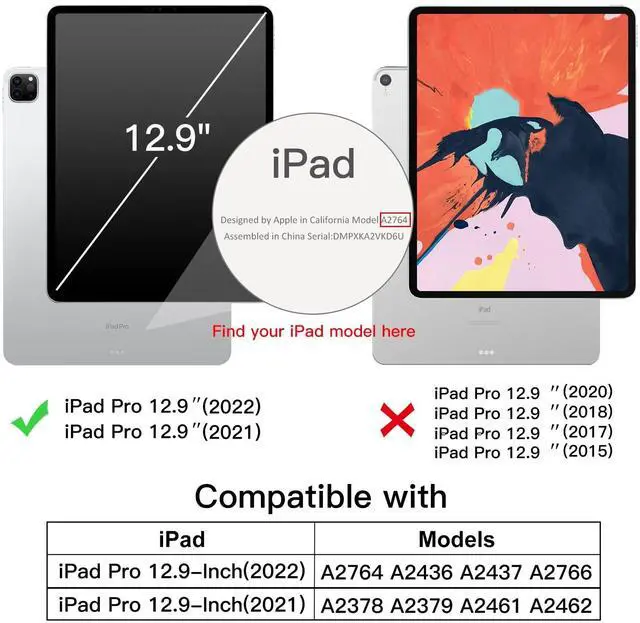 • [Compatibility] Designed for iPad Pro 12.9-Inch (2022/2021 Model, 5th/6th Generation, NOT for 2015/2017/2018/2020 Model, 1st/2nd/3th/4th Generation). Fits iPad Models: A2436 A2764 A2437 A2766 A2378 A2379 A2461 A2462. Please check back bottom of your iPad to find the model number