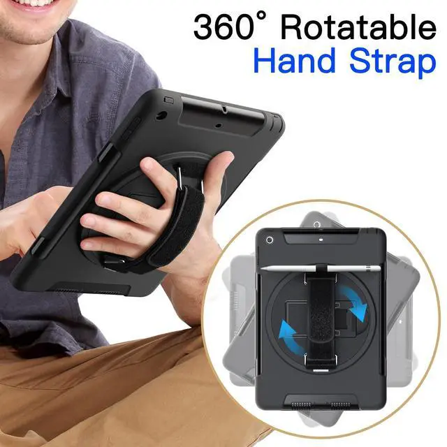 Fit models: A1893 A1954 A1822 A1823. Please check the back bottom of your iPad to find the model number ^^ [Heavy Duty Protection] 3-Layer total front and back case for full protection. A PC front cover with built-in PET screen protector, hard PC inner shell and flexible TPU back shell. Perfectly protect your device against unexpected drops, scratches and shocks ^^ [360 Rotating Kickstand & Hand Strap] Easily support your iPad in multiple angles. Moreover, the soft hand strap allows you to hold your iPad firmly and comfortably to prevent accidental drops. And your kids can use iPad easily and safely to study or watch movies ^^ [Detachable & Adjustable Shoulder Strap] Carry your iPad conveniently wherever you are at home, at work, or on a trip. You can also hang it behind the headrest of the car seat for shared viewing ^^ [User-Friendly] Precise cutouts for easy access to the speaker, camera, buttons and other ports. And an elastic loop band beside the hand strap stores your Pencil easily, no trouble of finding your Pencil (Pencil Not Included)