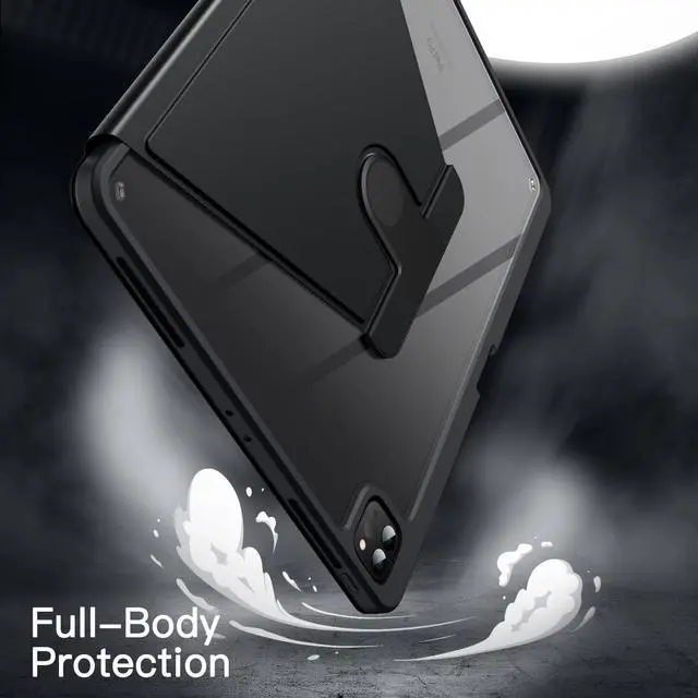 Elevate your iPad Pro 12.9 -inch experience with this sleek, hard-shell case from JETech. Crafted with a clear PC back, shockproof TPU frame, and PU leather front cover, it offers robust protection against daily wear and tear. The case features a 360-degree swivel design, allowing you to position your iPad in portrait or landscape mode at various angles, perfect for work, browsing, or entertainment. It also boasts an auto wake/sleep function, activated by opening or closing the front cover, ensuring energy efficiency. A built-in pencil holder keeps your Apple Pencil securely stored and easily accessible.