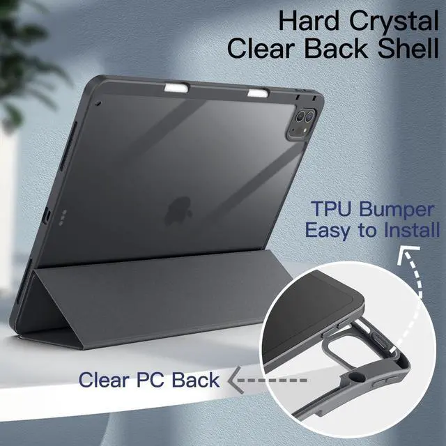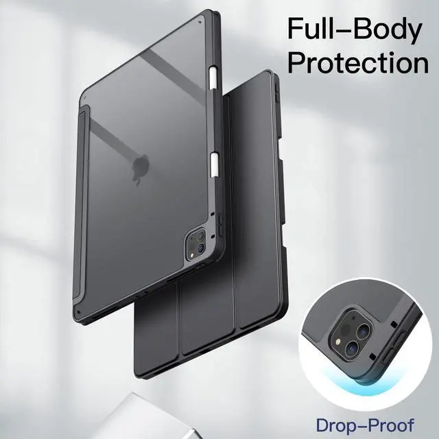 JETech Case for iPad Pro 12.9-Inch (2022/2021/2020/2018) with Pencil Holder, Clear Transparent Back Shell Slim Stand Shockproof Tablet Cover, Auto Wake/Sleep (Space Gray)