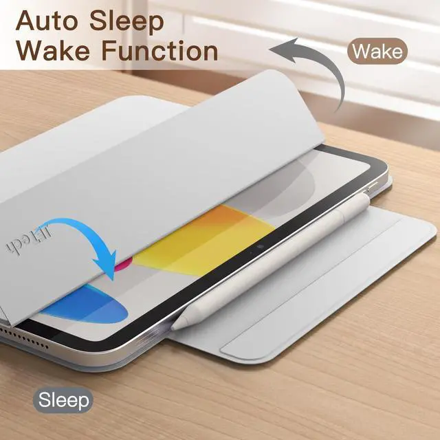Note: Not support 1st Gen Pencil magnetic adsorption ^^ [Magnetic Smart Case] Built-in strong magnets ensure your device attached firmly and easily, and support automatic sleep/wake function ^^ [Slim & Lightweight] Made of PU leather exterior and microfiber interior, durable materials provide comfortable touch and reliable protection for the main body of your device. The slim & lightweight design keeps your iPad from looking bulky ^^ [User-Friendly] The magnetic fold-over clasp offers extra protection and makes it easy to carry your Pencil. Easy access to all the controls and features ^^ [Tri-Fold Case] The tri-fold front cover supports two standing positions to satisfy your viewing and typing needs