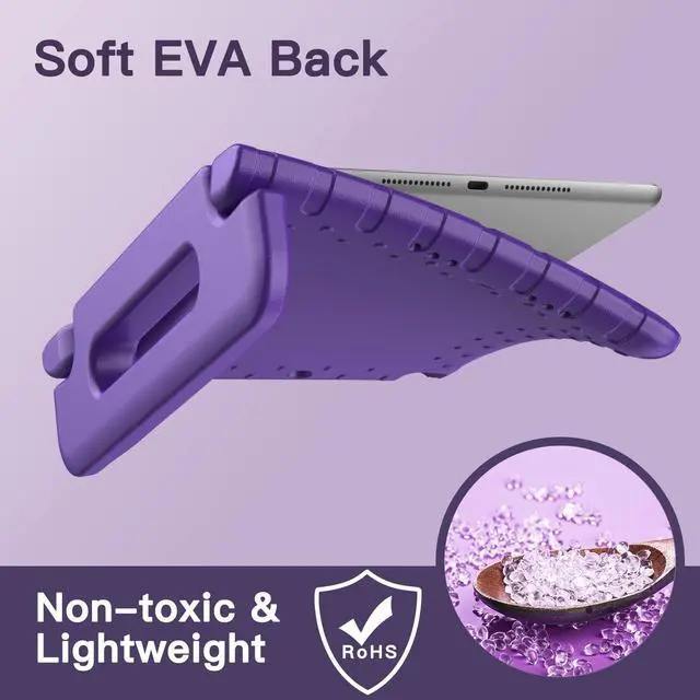 • [Convertible Handle] Designed with a handle with anti-slip textures. It is easy for kids to carry around, and the handle can be folded back into a stand for hands-free viewing and comfortable typing