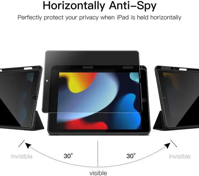 [Privacy Protection] When the iPad is held horizontally, the screen is only visible to persons directly in front of screen, protecting your privacy from peeping by strangers. (Note that the protector will darken the screen a little for a better anti-spy effect. And you can turn up the display brightness for better viewing experience) ^^ [Compatibility] Perfectly designed for iPad 10.2 -inch (9th/8th/7th generation, 2021/2020/2019).