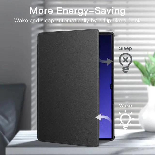 [Auto Wake/Sleep] Built-in strong magnet automatically wakes up your tablet and puts it to sleep just by a flip like a book. In addition, allow easy open and secure close