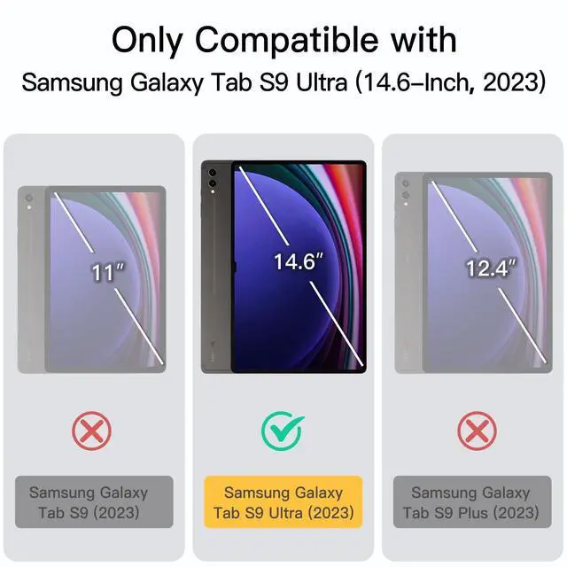 [Snug-Fit Design] Exclusively compatible with Samsung Galaxy Tab S9 Ultra 14.6 inch. And you can access full functionality of your tablet via precise cutouts and easy-to-press buttons ^^ [Built-for S Pen] You can pair and charge your S Pen magnetically through the back slot. Also there is a built-in pen holder for securely store and grab your