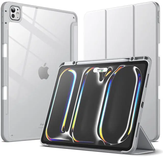 JETech Case for iPad Pro 13-Inch M5/M4 (2025/2024) with Pencil Holder, Clear Transparent Back Shell Slim Stand Shockproof Tablet Cover, Auto Wake/Sleep (Silver)