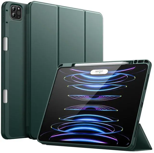 JETech Case for iPad Pro 12.9-Inch (6th/5th Generation, 2022/2021 Model) with Pencil Holder, Support 2nd Pencil Charging, Slim Tablet Cover with Soft TPU Back, Auto Wake/Sleep (Misty Blue)