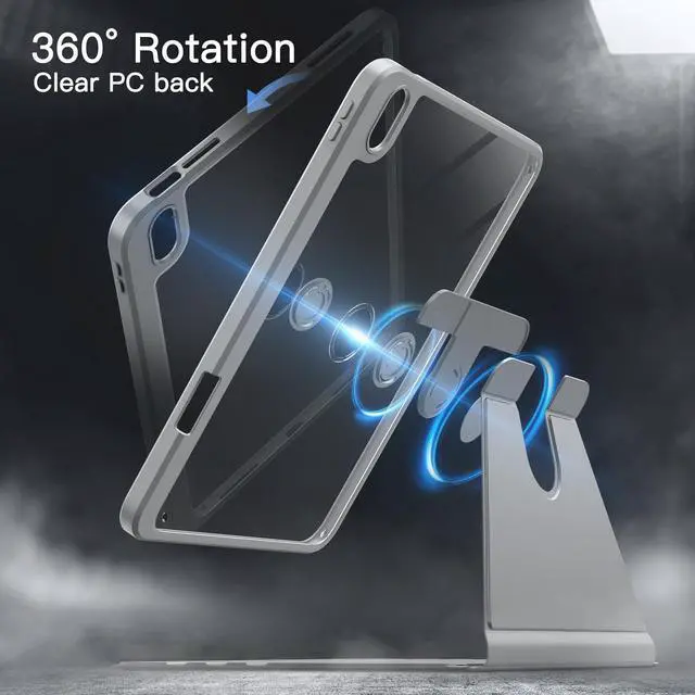 Fit iPad Models: A3354 / A3355 / A3356 / A2696 / A2757 / A2777 / A3162. Please Go to Settings > General > About, then tap the Model Number field to reveal the A model number ^^ [360 Degree Rotating] The case coming with a 360 degree swivel design, stably supports your iPad whether in a portrait or landscape stand mode in various angles with three anti-slip deep grooves. Functional and convenient ^^ [Sturdy Protection] Built with clear PC back, shockproof TPU frame and PU leather front cover, this case protects your iPad well against drops and bumps. Also offer seamless protection with precise cutouts for the speaker, camera, buttons and other ports ^^ [Built-in Pencil Holder] You can always store your Pencil in the case, use it with your iPad anywhere, and certainly it is easy to take out your Pencil via a thoughtful slot (Note: Pencil Not Included) ^^ [Auto Wake/Sleep] Wake up the screen or bring it to a sleep mode by opening or closing the front cover. More energy-saving, and the built-in magnet keeps the case securely closed