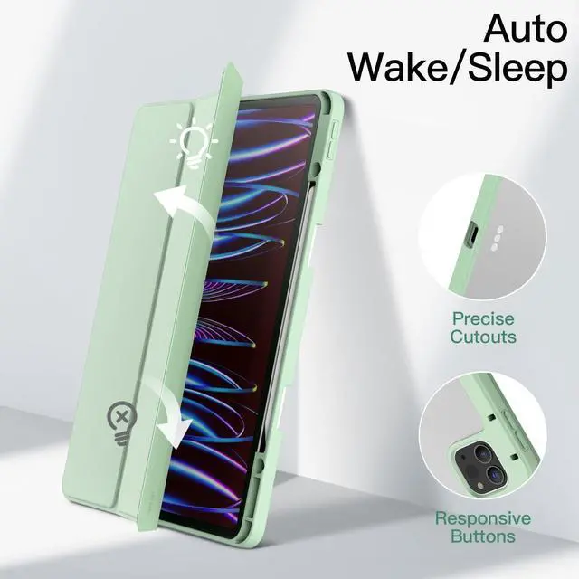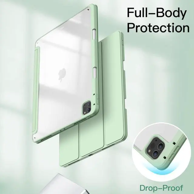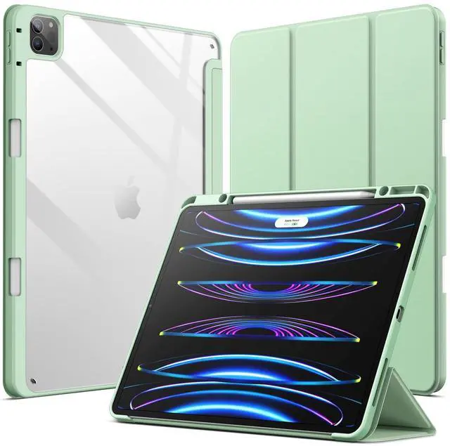 JETech Case for iPad Pro 12.9-Inch (2022/2021/2020/2018) with Pencil Holder, Clear Transparent Back Shell Slim Stand Shockproof Tablet Cover, Auto Wake/Sleep (Matcha Green)