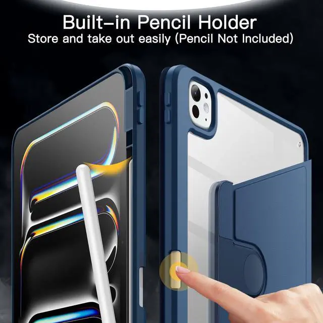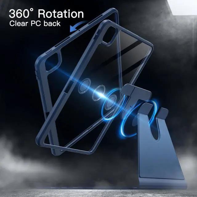 JETech Rotating Case for iPad Pro 13-Inch M5/M4 (2025/2024) with Pencil Holder, 360 Degree Rotation Protective Stand Cover Clear Back, Auto Wake/Sleep (Navy)