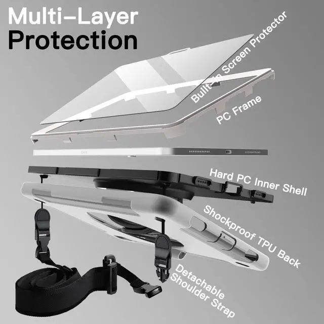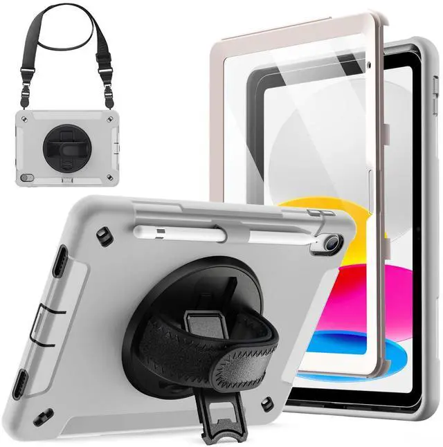 Fit models: A3354 / A3355 / A3356 / A2696 / A2757 / A2777 / A3162. Please Go to Settings > General > About, then tap the Model Number field to reveal the A model number ^^ [Heavy Duty Protection] 3-Layer total front and back case for full protection. A PC front cover with built-in PET screen protector, hard PC inner shell and flexible TPU back shell. Perfectly protect your device against unexpected drops, scratches and shocks ^^ [360 Rotating Kickstand & Hand Strap] Easily support your iPad in multiple angles. Moreover, the soft hand strap allows you to hold your iPad firmly and comfortably to prevent accidental drops. And your kids can use iPad easily and safely to study or watch movies ^^ [Detachable & Adjustable Shoulder Strap] Carry your iPad conveniently wherever you are at home, at work, or on a trip. You can also hang it behind the headrest of the car seat for shared viewing ^^ [User-Friendly] Precise cutouts for easy access to the speaker, camera, buttons and other ports. And an elastic loop band beside the hand strap stores your Pencil easily, no trouble of finding your Pencil (Pencil Not Included)
