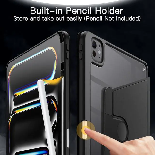 JETech Rotating Case for iPad Pro 13-Inch M5/M4 (2025/2024) with Pencil Holder, 360 Degree Rotation Protective Stand Cover Clear Back, Auto Wake/Sleep (Black)