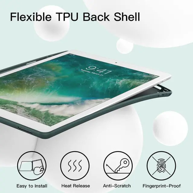 [Soft TPU Back] The flexible TPU inner back provides comprehensive protection for your iPad from scratches and bumps while making it easy to put on and take off. The high-quality PU cover of the front and back feels silky. Thin profile provides a comfortable grip