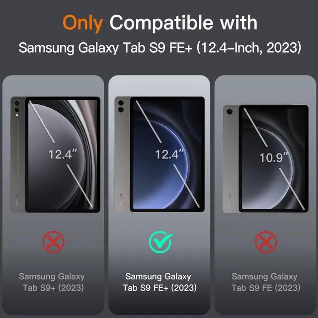 [Compatibility] Designed for Samsung Galaxy Tab S9 FE+ / S9 FE Plus 12.4 inch. Snug-fit case with precise cutouts makes it easy for you to control all the features and buttons, and supports auto wake/sleep function ^^ [Quality Materials] Built with a PU leather exterior and a soft TPU inner back. Offer a full-body protection for your device against scratches and drops. Durable, classic, easy to install and comfortable to the touch ^^ [Designs for S Pen] You can pair and charge your S Pen magnetically through the back slot. Also there is a built-in pen holder for securely store and grab your