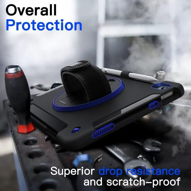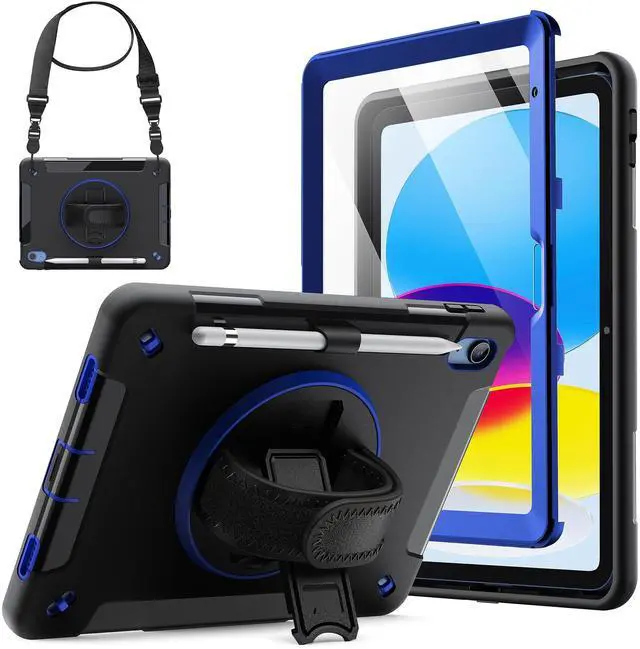 Fit models: A3354 / A3355 / A3356 / A2696 / A2757 / A2777 / A3162. Please Go to Settings > General > About, then tap the Model Number field to reveal the A model number ^^ [Heavy Duty Protection] 3-Layer total front and back case for full protection. A PC front cover with built-in PET screen protector, hard PC inner shell and flexible TPU back shell. Perfectly protect your device against unexpected drops, scratches and shocks ^^ [360 Rotating Kickstand & Hand Strap] Easily support your iPad in multiple angles. Moreover, the soft hand strap allows you to hold your iPad firmly and comfortably to prevent accidental drops. And your kids can use iPad easily and safely to study or watch movies ^^ [Detachable & Adjustable Shoulder Strap] Carry your iPad conveniently wherever you are at home, at work, or on a trip. You can also hang it behind the headrest of the car seat for shared viewing ^^ [User-Friendly] Precise cutouts for easy access to the speaker, camera, buttons and other ports. And an elastic loop band beside the hand strap stores your Pencil easily, no trouble of finding your Pencil (Pencil Not Included)